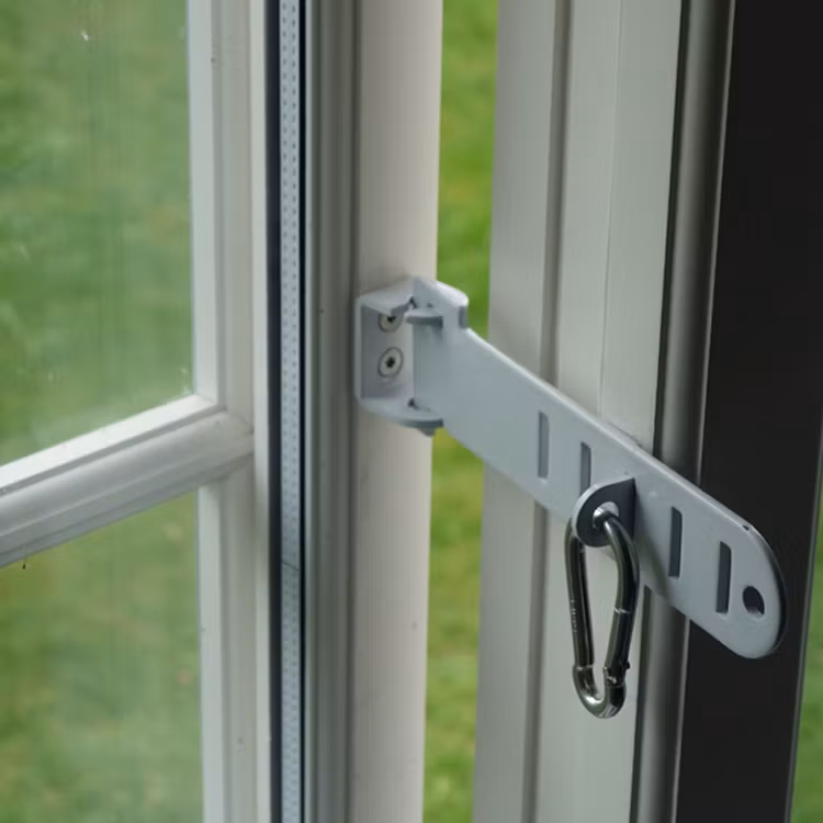 Vårt starka vädringsbeslag av stål är speciellt utformat för att ge dig ökad trygghet och säkerhet samtidigt som du njuter av härlig friskluft i ditt hem. Det finns möjlighet till att låsa beslaget med antingen ett en karbinhake som ingår i leveransen eller ett hänglås som införskaffas separat.